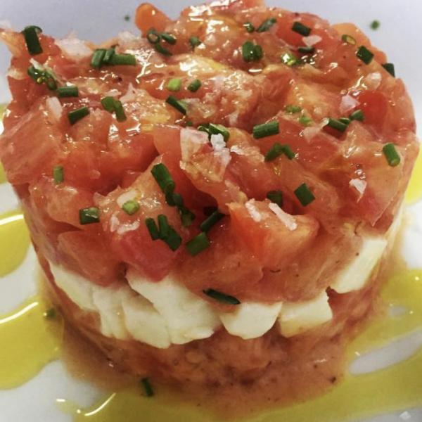 Tomate cortado a daditos con queso fresco y una salsa casera